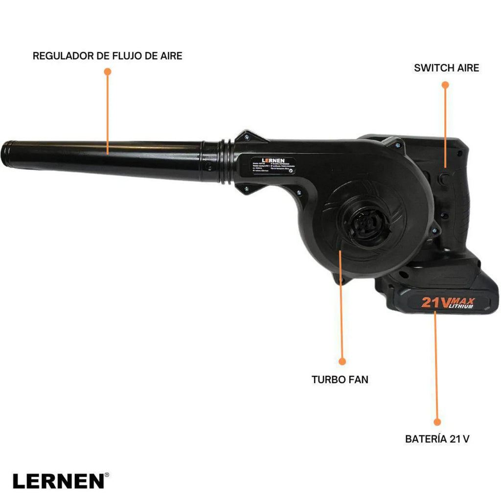 La sopladora aspiradora inalámbrica Lernen es una herramienta práctica y versátil para mantener tus espacios limpios sin esfuerzo. Su diseño compacto y su funcionamiento a batería permiten trabajar con total libertad de movimiento tanto en interiores como exteriores.