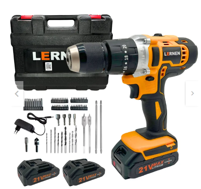 🔧Taladro Inalámbrico Lernen Percutor – 13mm Amarillo