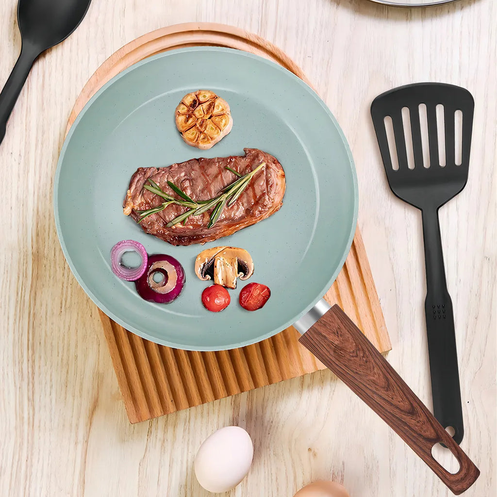 Prepara tus recetas favoritas con el set de baterÃa de cocina Chef Choice, que combina estilo, funcionalidad y durabilidad. Su acabado en verde agua le da un toque moderno a tu cocina, mientras que cada pieza está diseñada para ofrecer cocción uniforme y eficiente.