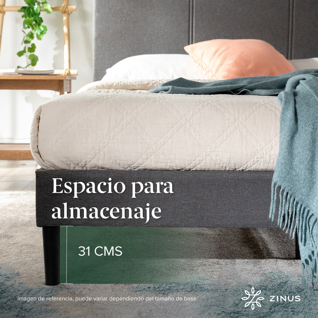 La base cama Zinus Long Cambril de 2 plazas ofrece la combinación perfecta de estilo, resistencia y comodidad. Con un diseño moderno en color gris, incorpora un respaldo acolchado que brinda soporte y un toque elegante a tu dormitorio.