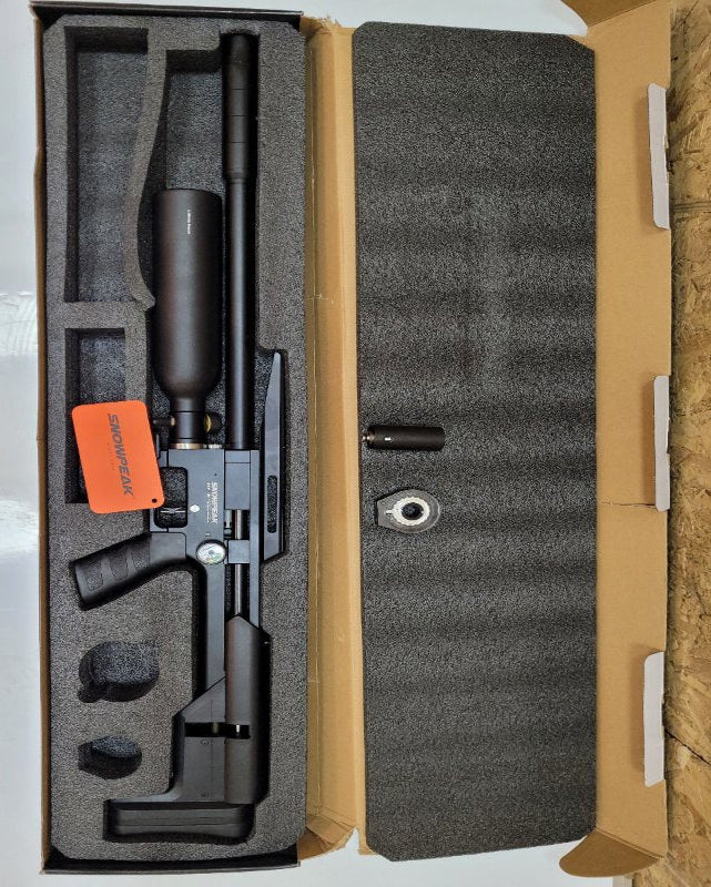 Rendimiento y precisión en cada disparo. El Snowpeak M60B es un rifle PCP (pre-cargado por aire) pensado para tiradores que buscan consistencia, bajo retroceso y buena autonomía en calibre 5.5 mm (.22). Su acabado en negro le da un aspecto sobrio y profesional, ideal tanto para prácticas de tiro como para actividades deportivas supervisadas.