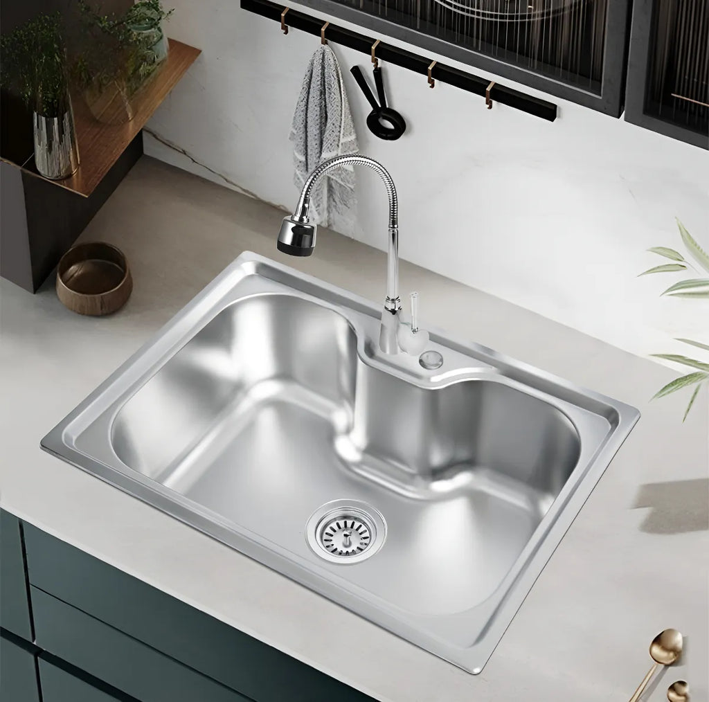 El lavaplatos empotrado Giovanni combina resistencia y estilo con un diseño moderno en acabado plateado. Su estructura robusta y cubeta profunda brindan comodidad y durabilidad para el uso diario en la cocina.