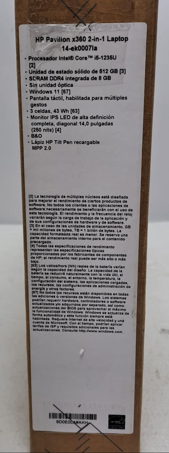 💻Notebook HP Pavilion X360 2 en 1 14-EK0007LA I5-1235U 512GB SSD 8GB RAM