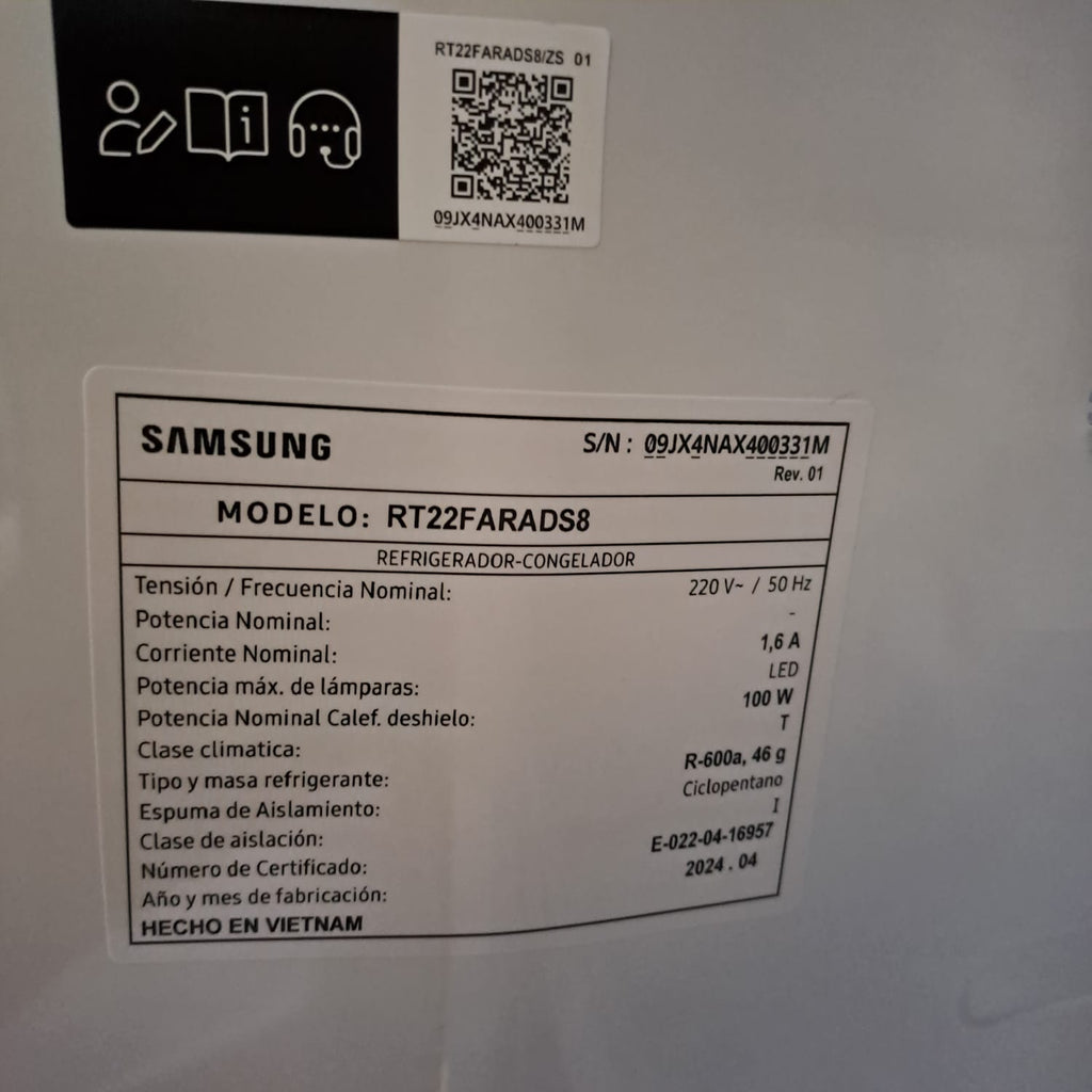 El Samsung RT22FARADS8 es un refrigerador con congelador integrado que ofrece un funcionamiento práctico y eficiente para el uso diario. Con 236 litros de capacidad total, acabado en color gris y sistema de deshielo automático, es una excelente opción para quienes buscan comodidad y buen rendimiento en un formato compacto.
