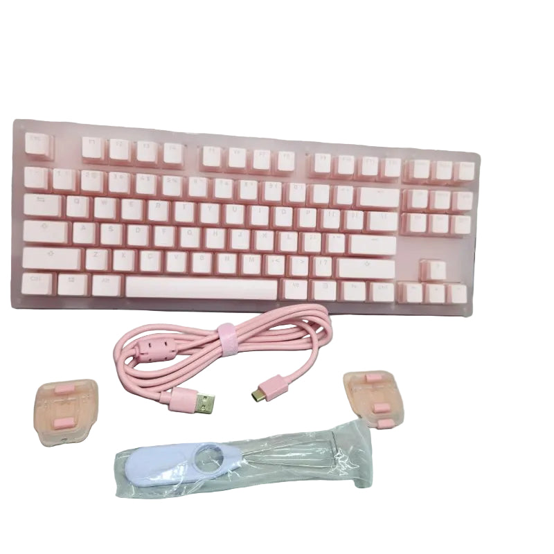El teclado mecánico con cable Epomaker Akko Sakura de 87 teclas en color rosa combina diseño estético con funcionalidad avanzada. Con iluminación RGB y distribución PTB/PDING, ofrece una experiencia de tecleo cómoda y visualmente atractiva para usuarios que buscan un teclado mecánico compacto y confiable para uso diario, juegos o productividad.