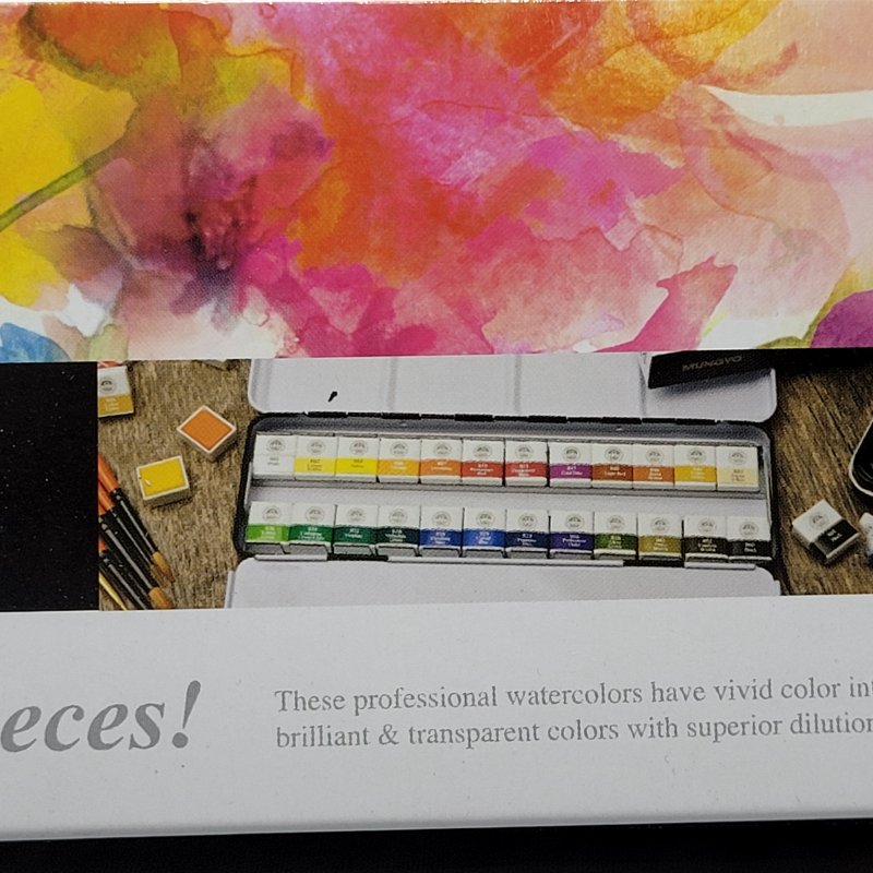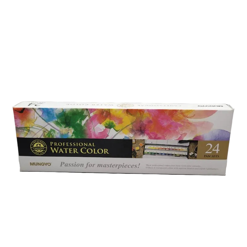 El set de 24 acuarelas Mungyo Professional es un estuche de pinturas en pastilla diseñado para artistas, estudiantes de arte y aficionados que buscan una paleta amplia de colores con buena calidad de pigmento y facilidad de uso. Ideal para crear obras con efectos de color, mezclas y transparencias propias de la técnica de acuarela.