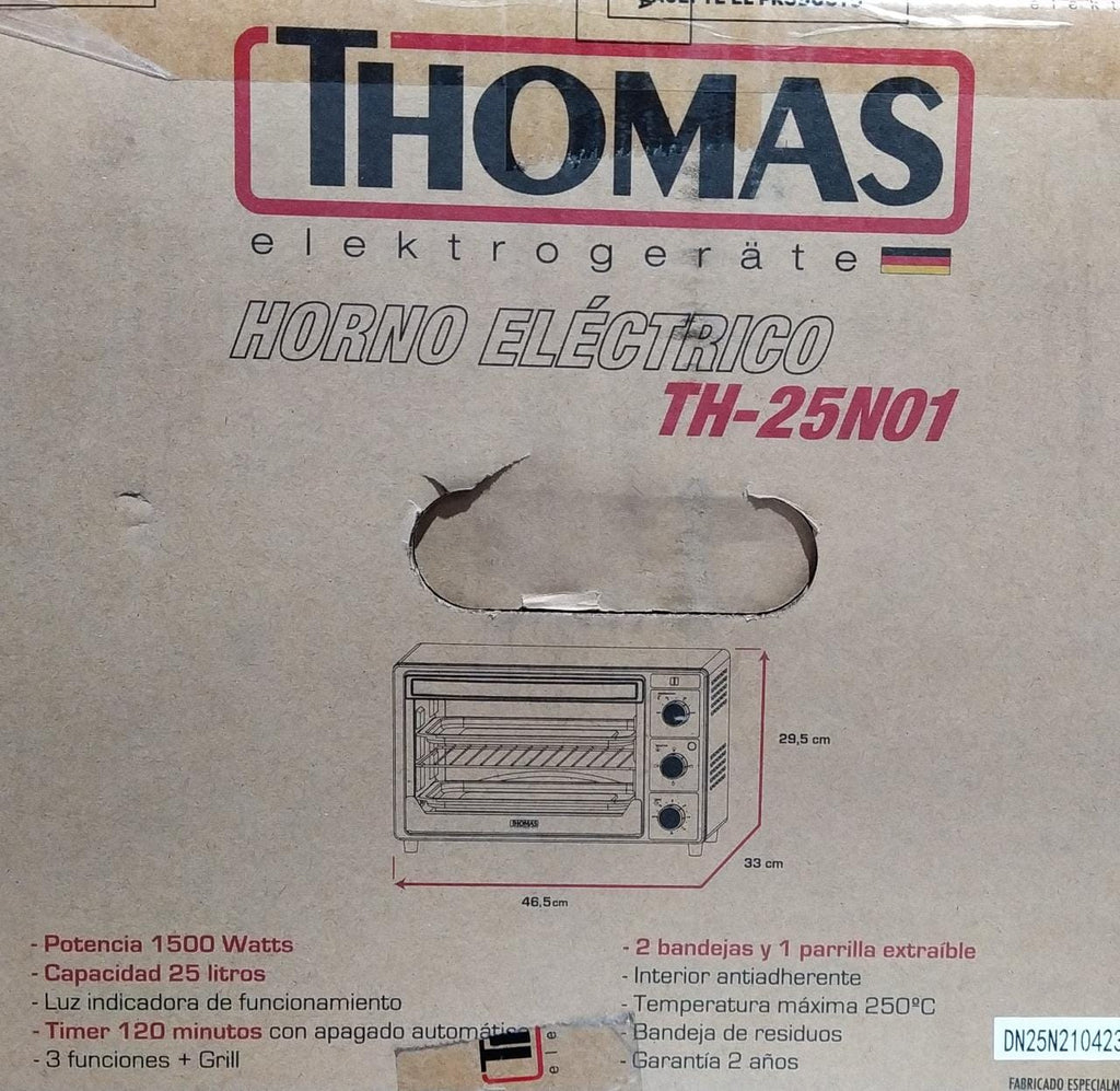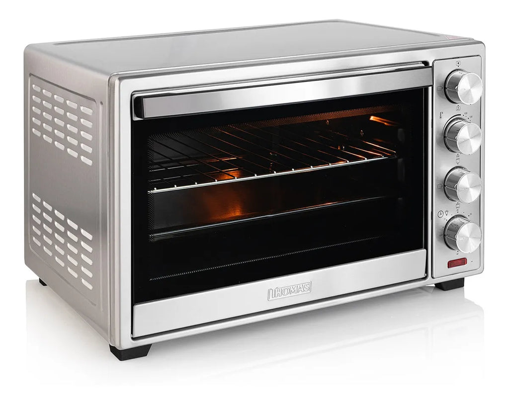 El Horno Eléctrico Thomas TH-38I es un electrodoméstico diseñado para hornear, tostar y calentar alimentos de manera eficiente en el hogar. Con una capacidad de 38 litros y un acabado en inox (acero inoxidable), combina funcionalidad y estilo moderno para tu cocina.