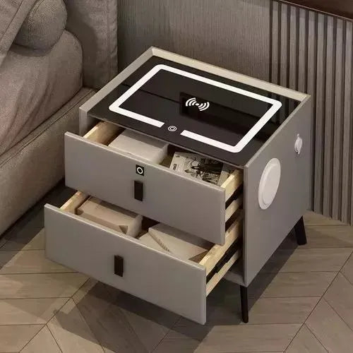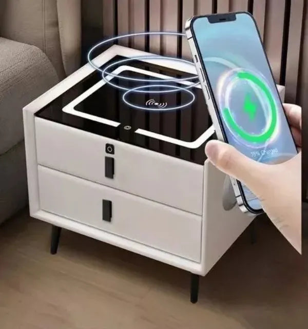 💡 Este velador inteligente es ideal para modernizar tu dormitorio o living, perfecto si buscas una lampara de noche funcional y con estilo. Combina iluminación LED ajustable en intensidad y color desde tu smartphone, con la practicidad de dos cajones espaciosos para guardar tus objetos personales y una superficie superior con carga inalámbrica Qi para tu celular. Su diseño blanco y minimalista se integra fácilmente a cualquier decoración, ofreciendo comodidad, organización y tecnología en un solo mueble.