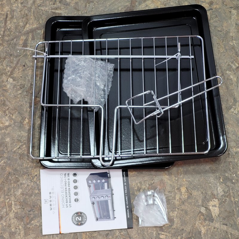 🔥 Ideal para cocinar, hornear, gratinar y asar con precisión y facilidad en tu hogar. Perfecto si buscas un horno eléctrico de capacidad generosa, confiable y con funciones completas para preparar desde pizzas y panes hasta asados y postres. Este horno URSUS TROTTER PRO-B de 38 litros y 1500W de potencia ofrece un calentamiento uniforme y rápido gracias a su sistema de convección y resistencia superior e inferior. Cuenta con un práctico termostato ajustable para controlar la temperatura según tu receta, un temporizador mecánico de hasta 120 minutos con apagado automático para mayor seguridad, y una luz interior que te permite monitorear la cocción sin abrir la puerta. Incluye dos parrillas y una bandeja para hornear, y su diseño negro es moderno y fácil de limpiar. Una solución versátil y eficiente para tu cocina, que combina capacidad, potencia y control en cada preparación.