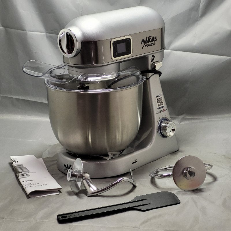 💪 Transforma tus preparaciones con la Batidora de Pedestal Maigas SC-265D, ideal para amantes de la repostería y cocina que buscan potencia y versatilidad. Perfecta si necesitas batir, mezclar o amasar grandes cantidades con facilidad, gracias a su motor de 800W y su amplio bowl de acero inoxidable con capacidad de 4.5 litros. Ofrece un control preciso con 5 velocidades más función turbo, incluye gancho para amasar, batidor globo y pala mezcladora para obtener resultados profesionales en pasteles, panes y cremas. Su diseño plateado y robusto no solo es elegante, sino también duradero, facilitando su limpieza y almacenamiento. Lleva tu creatividad culinaria al siguiente nivel con un equipo confiable y eficiente.