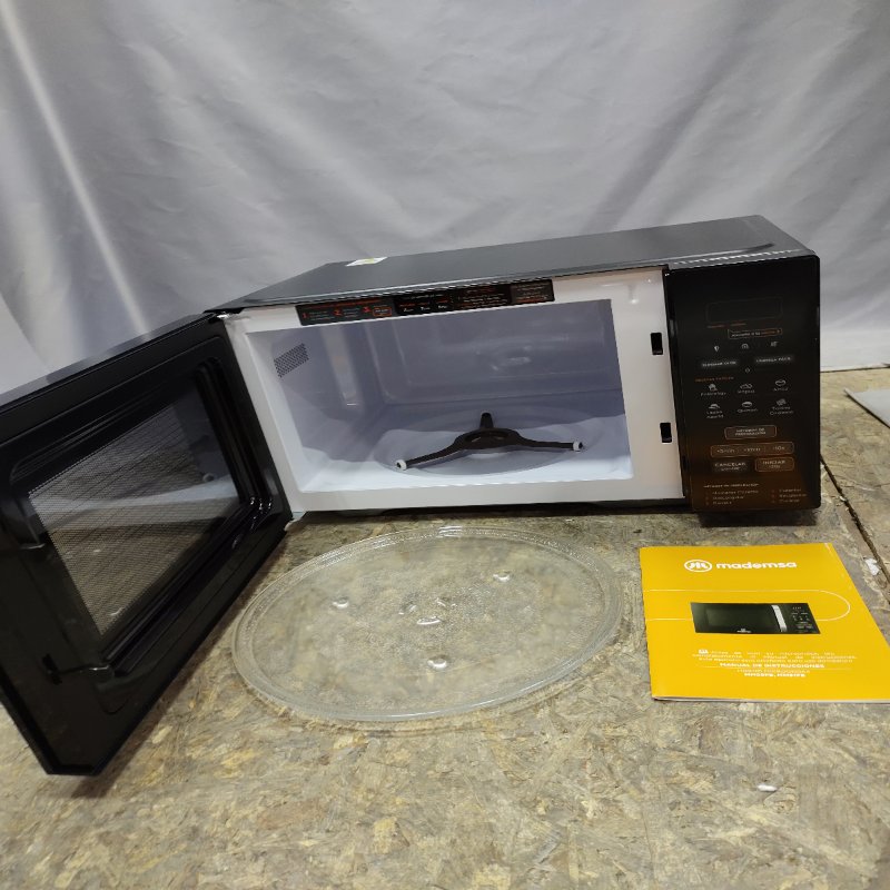 🍲 Ideal para calentar tus comidas rápidamente o descongelar ingredientes de forma práctica. Perfecto si buscas un electrodoméstico eficiente y compacto para tu cocina, hogar u oficina. Este microondas Mademsa de 28 litros de capacidad en color negro combina un diseño moderno con un desempeño confiable, ofreciendo 800W de potencia ajustable en 5 niveles para un calentamiento preciso. Su temporizador digital de hasta 35 minutos y el práctico plato giratorio de 255 mm garantizan una cocción uniforme. Su operación es sencilla e intuitiva, convirtiéndolo en un aliado indispensable para tu día a día.