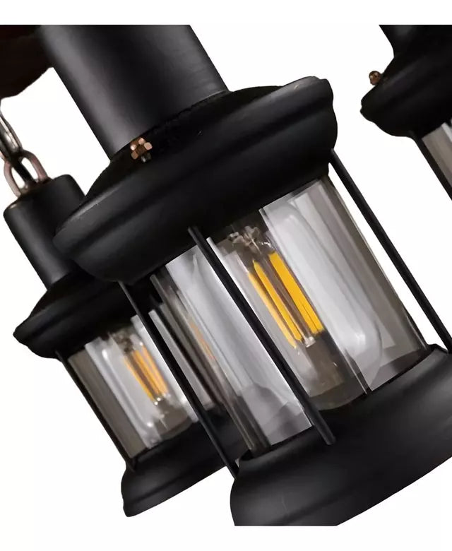Lampara Colgante Decorativa de Madera con 6 Faroles en Estilo Timón Rustico Marrón