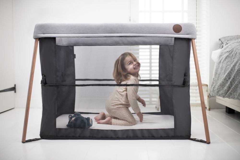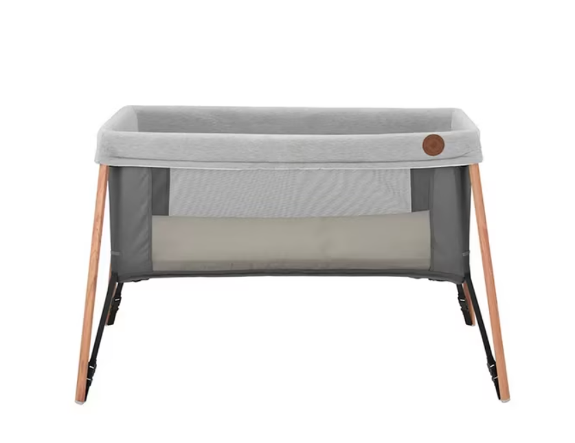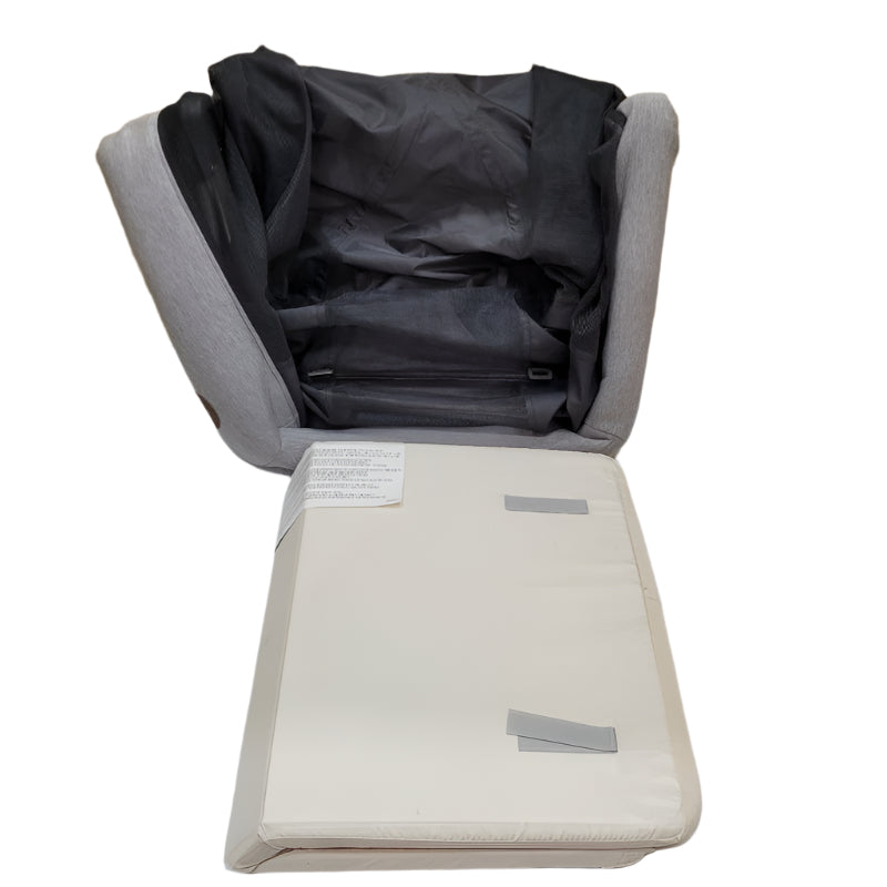 Una cuna de viaje plegable ideal para recién nacidos, ligera y funcional, con estilo moderno y opciones de uso tanto en casa como fuera.