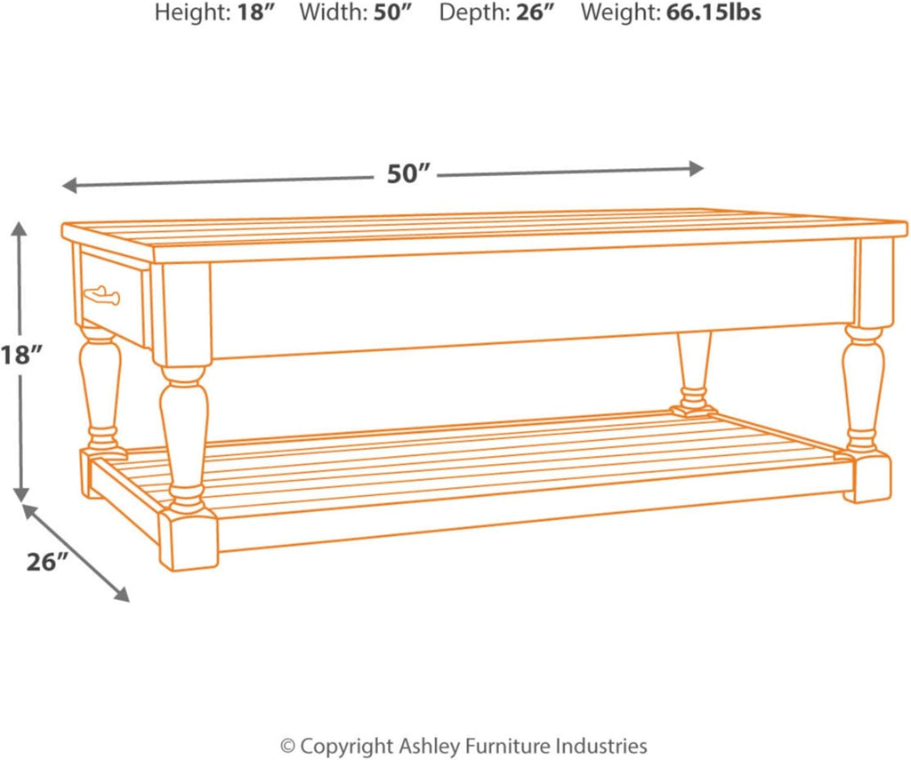 Agrega un toque de encanto rústico a tu sala con esta elegante mesa de centro con dos cajones. Diseñada por Ashley Furniture, la mesa Shawnalore T782-1 combina funcionalidad y estilo clásico con un acabado envejecido que resalta la veta natural de la madera.